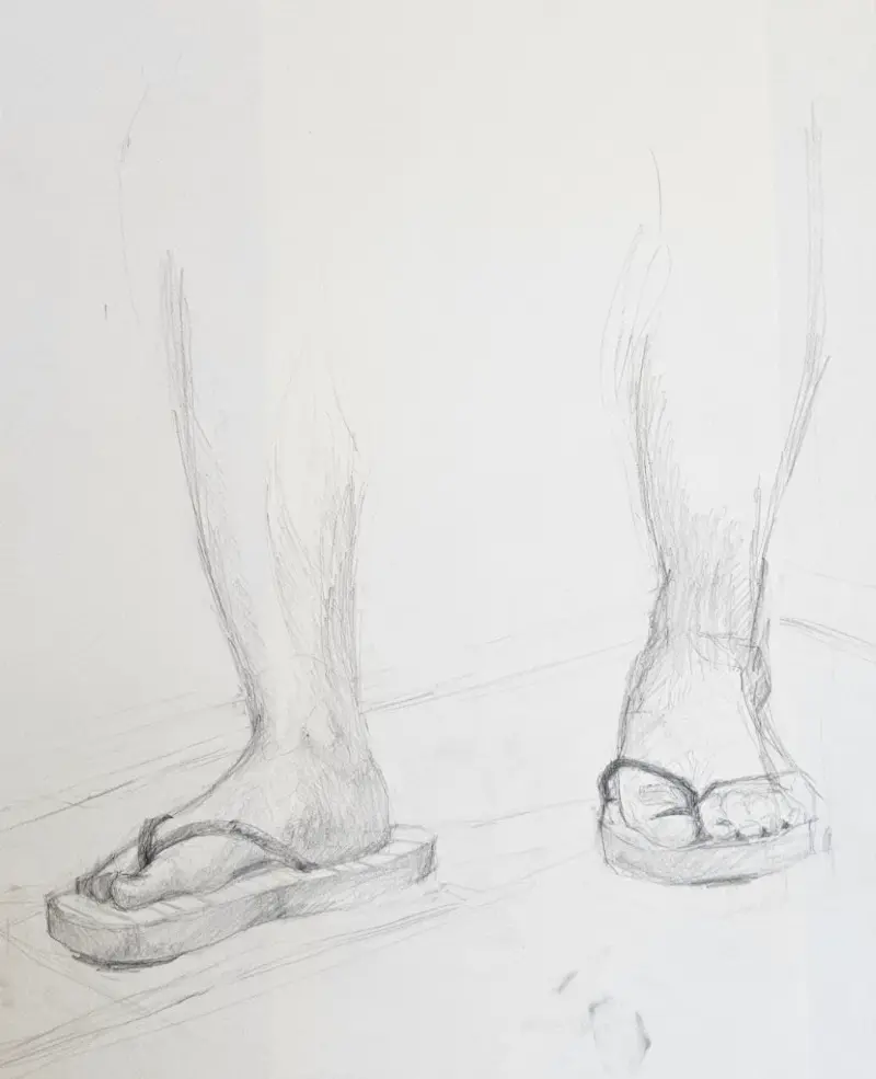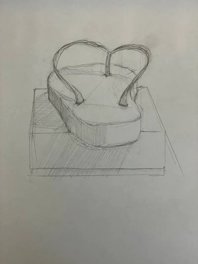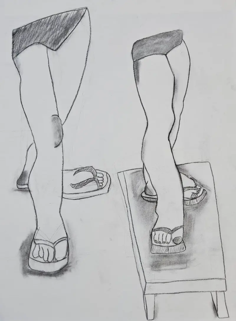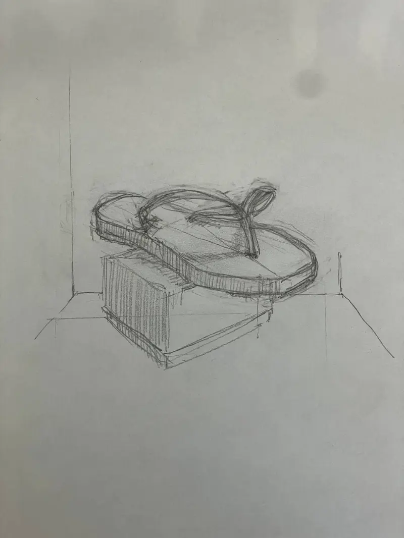 This assignment uses the flip-flop, an everyday, accessible object as a bridge between object drawing and figure drawing. By studying the flip-flop in isolation and then in relation to the human body, you will develop sharper observational skills, strengthen up your sense of form and foreshortening, and cultivate greater spatial awareness in your figure drawings.The flip-flop acts as a simple yet structurally complex prop – it conforms to the foot, establishes contact with the ground plane, and creates a set of forms and contours that challenge accuracy and analytical observation.